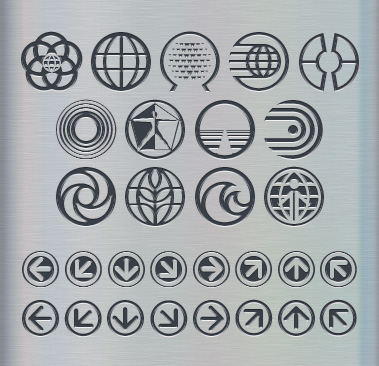 WORLD SYMBOLS contains icons that were used to represent the various attraction pavilions in the Epcot theme park Orlando, Florida.